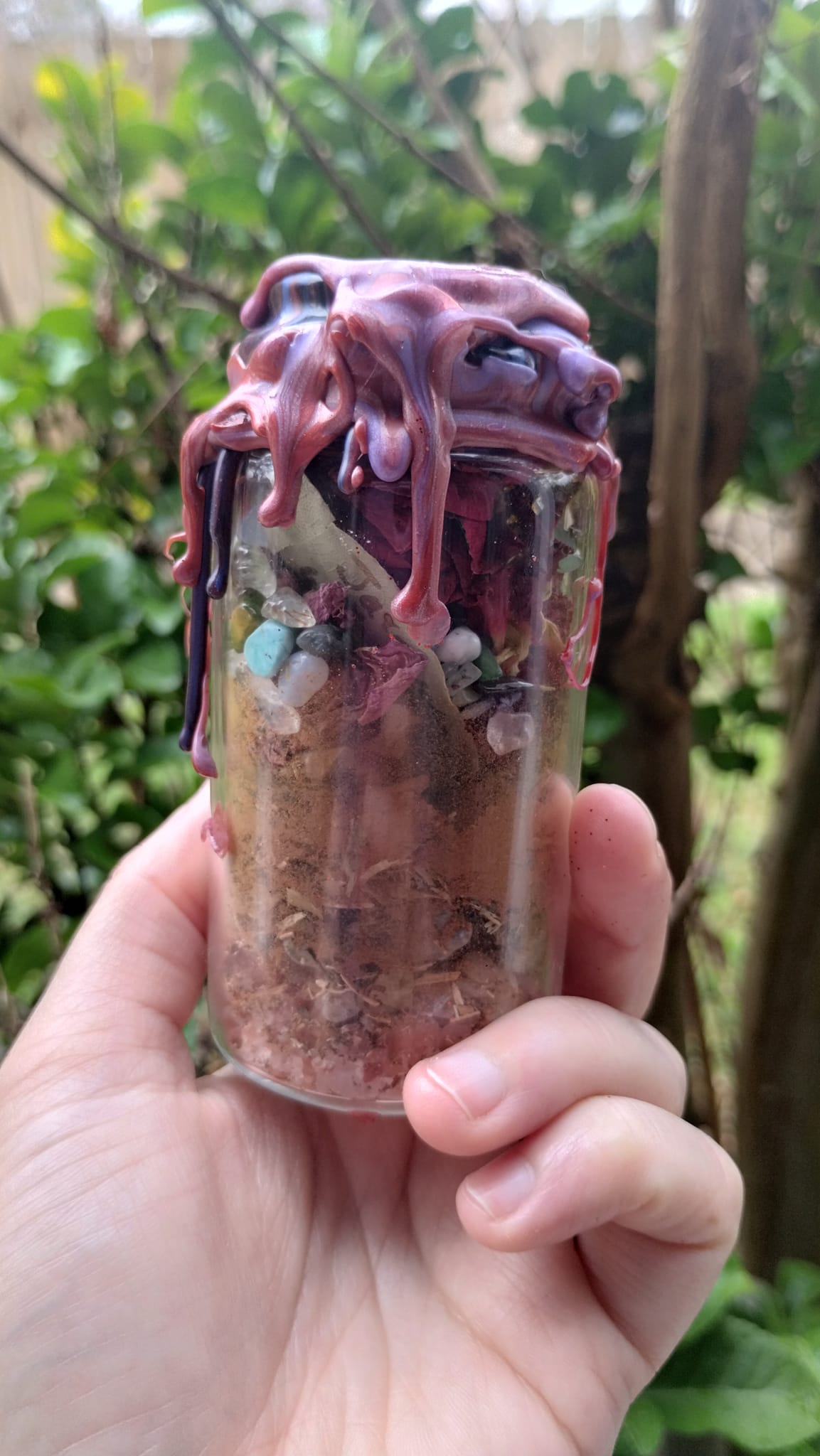 Crafted with herbs and crystals aligned with fertility and emotional strength, this spell jar serves as a sacred ally for focus, hope, and womb energy.