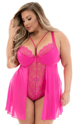Pink isn’t just a color, it’s an attitude—so step into this two-in-one piece and don’t hold back. With gorgeous, curve-hugging lace and a flattering mesh overlay, teddy meets babydoll in a hot style you’ll want to wear night after night.