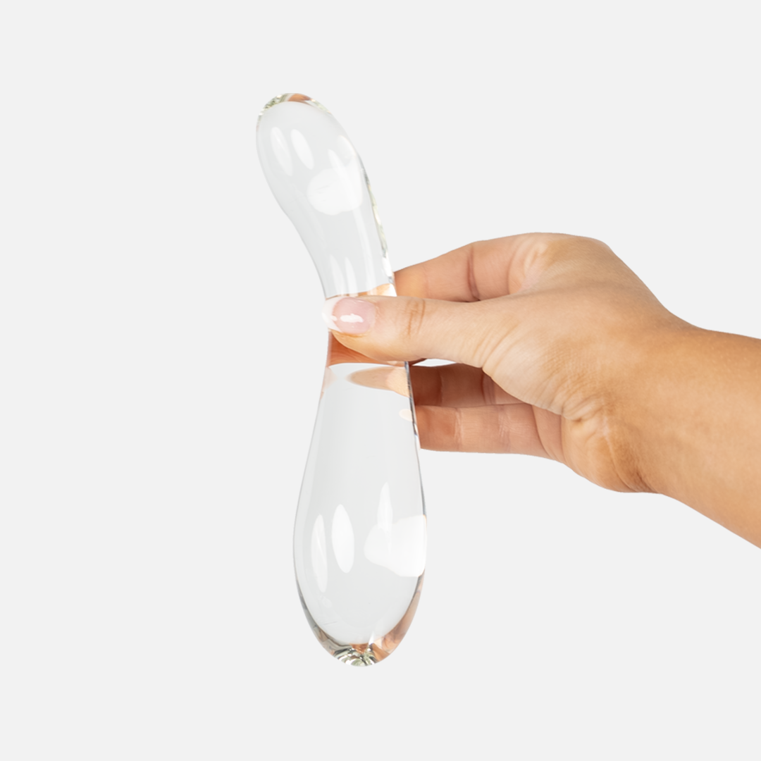 This dual-sided glass dildo features a curvaceous design, providing different sensations depending on which end is used. Each side is ergonomically designed for comfortable handling to help hit all the right spots.